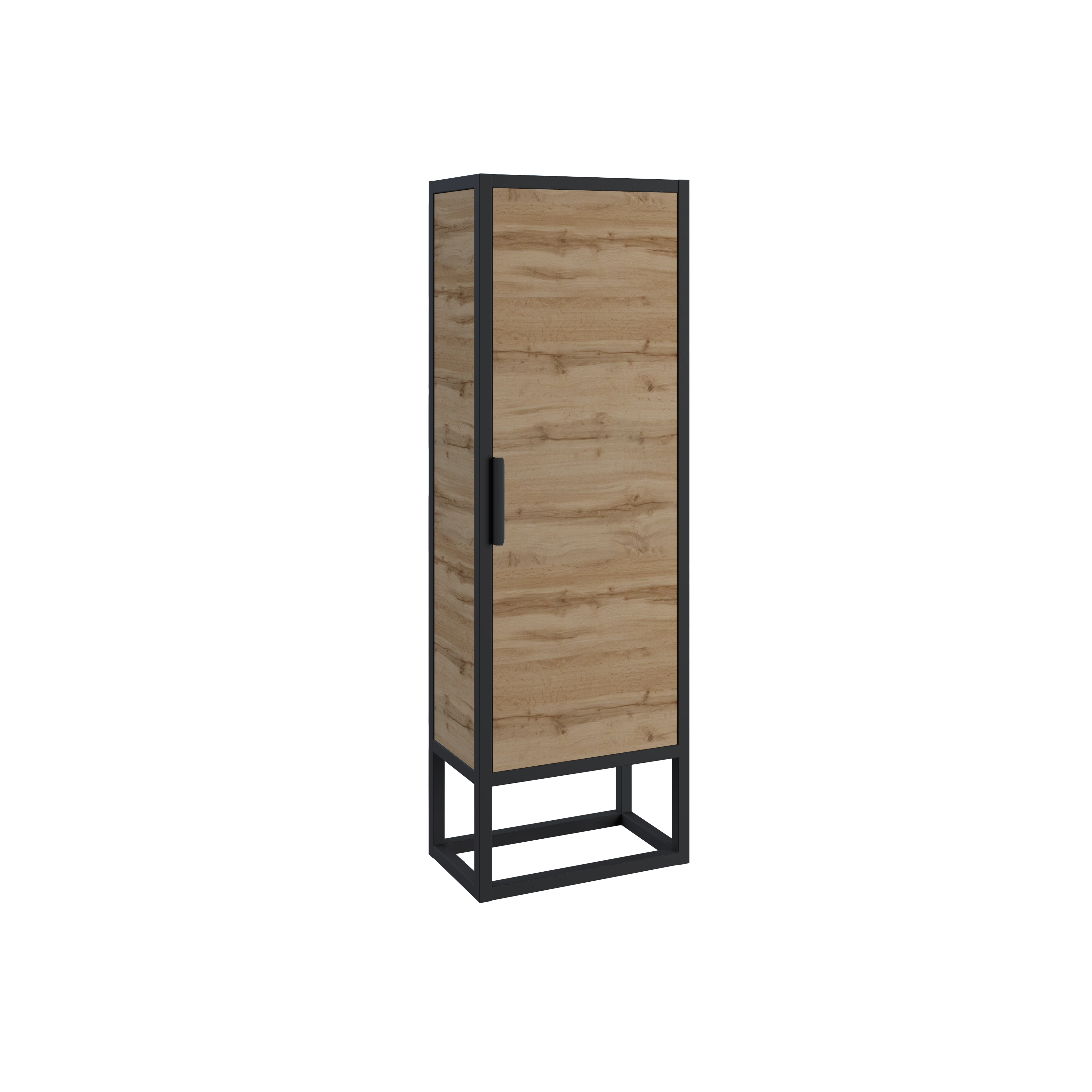 Стильный шкаф-пенал с лаконичным и одновременно эффектным дизайном, главный акцент в котором приходится на контраст двух материалов - дерева и металла. Это делает шкаф подходящим для современных и эклектичных пространств, а том числе в такой стилистике как лофт или гранж. Шкаф из коллекции GRUNGE LOFT отличается прекрасной устойчивостью на горизонтальной поверхности, стильным и минималистичным дизайном, выраженной эстетикой и функциональностью, которая в современном высоком темпе жизни важна как никогда. Компактный и вместительный, он позволяет по-новому взглянуть на организацию процесса хранения в ванной комнате.Характеристики: