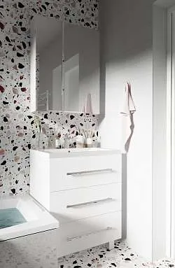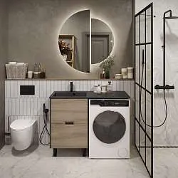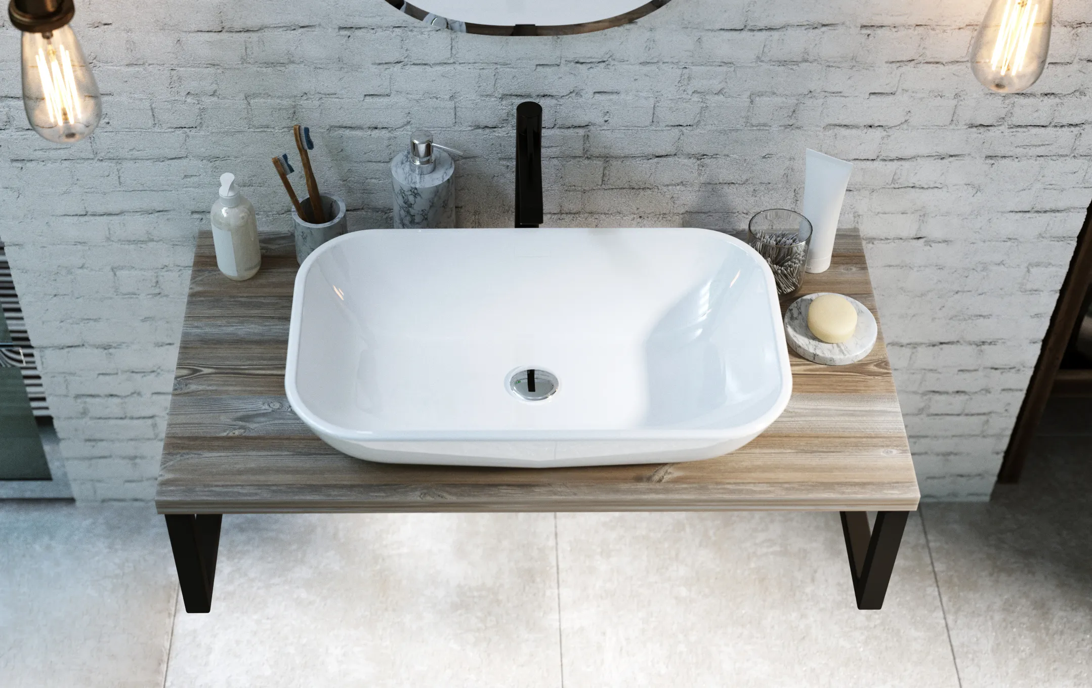 Функциональная и стильная столешница в востребованной и актуальной стилистике LOFT. Минималистичная и одновременно эффектная, она изготовлена в универсальной прямоугольной форме и дополнена такими практичными деталями, как металлические кронштейны, которые можно использовать в качестве рейлингов. Столешница выполнена из проверенных материалов, прекрасно защищена от воздействия влаги, не склонна к появлению сколов, царапин, трещин и других дефектов. Она подойдет для ванных комнат любых размеров и практически любой цветовой гаммы - от сдержанной до яркой и насыщенной.Характеристики:
