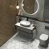 Столешница из керамогранита - это стильное, функциональное и долговечное решение, которое подойдет для ванных комнат, исполненных в самых разнообразных отделочных материалах. Такая универсальность, тем не менее, предполагает высокую декоративную и эстетическую ценность столешницы - она делает обстановку в ванной комнате по-настоящему стильной и соответствующей актуальным тенденциям в дизайне. Металлическое подстолье создает эффектный цветовой контраст, а также может использоваться в качестве практичных рейлингов для удобного размещения полотенец и банных халатов.