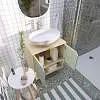 • Материал фасада – МДФ, облицованная матовой пленкой ПВХ, светлый деревянный корпус из влагостойкой ЛДСП. Благодаря этому тумба надолго сохранит первозданный вид в условиях повышенной влажности ванной комнаты.