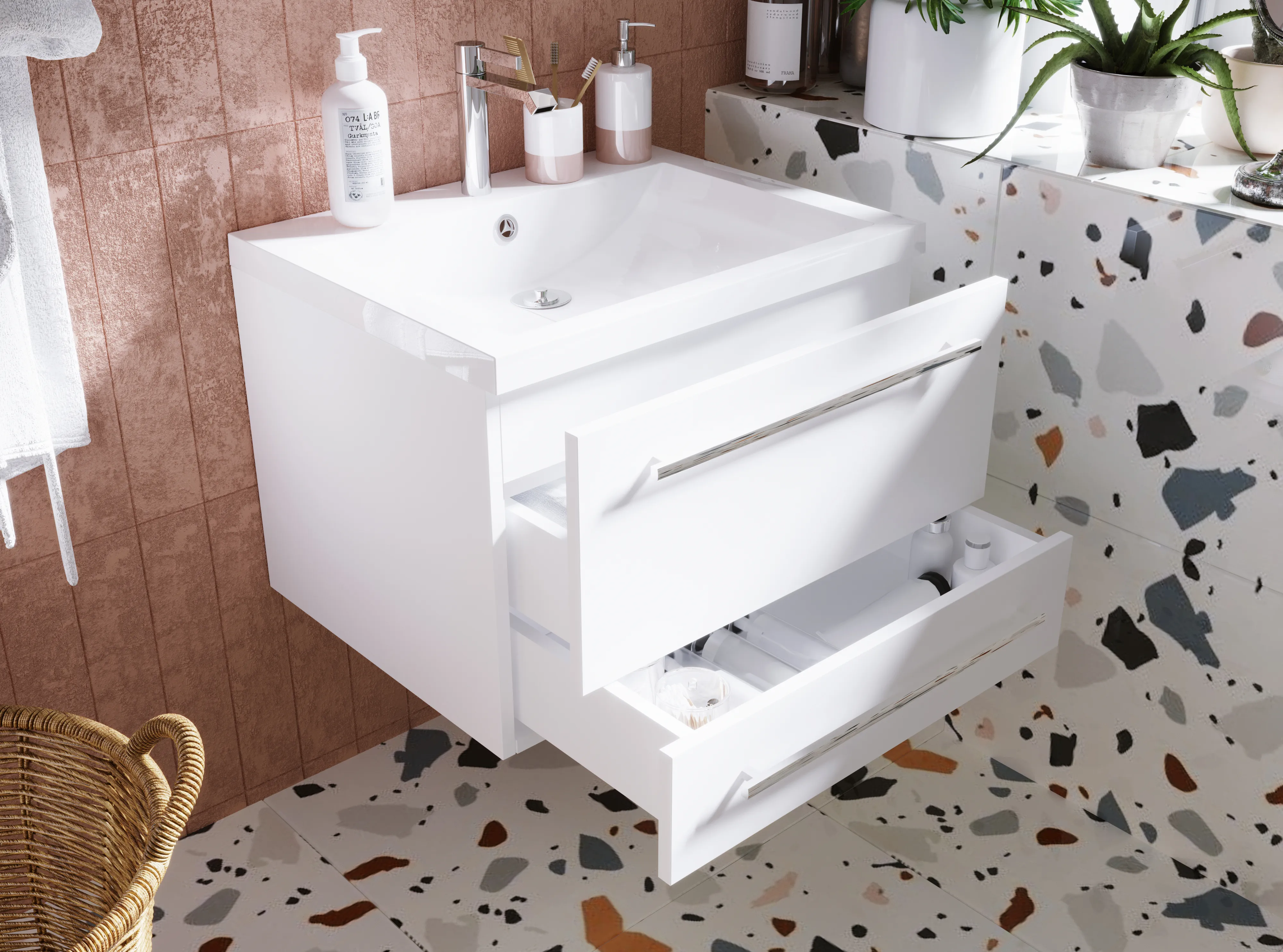 15 410 Р Тумба под раковину Вита 65Н 3в.я. белый глянец, МДФ