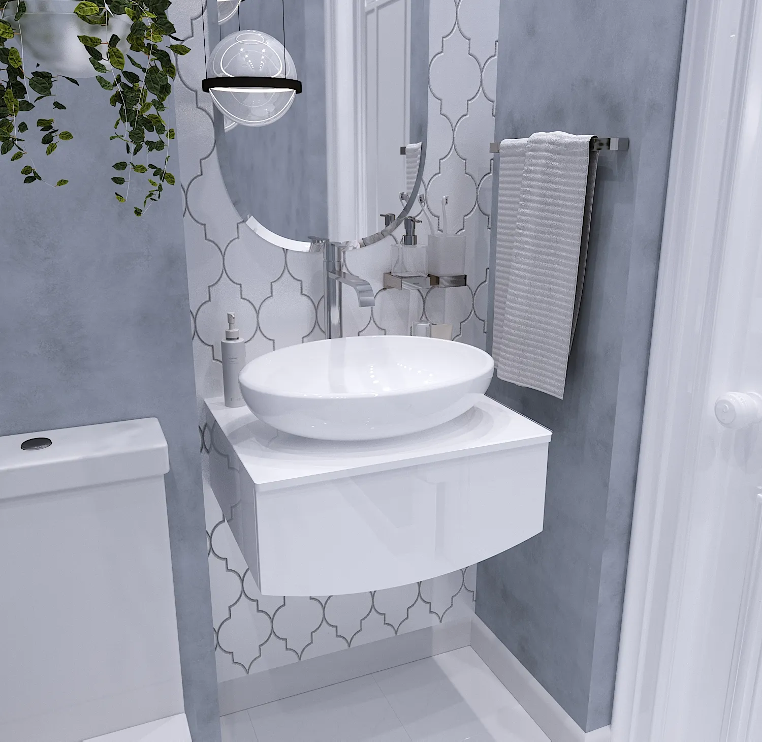 Изящная и лаконичная тумба, буквально парящая в воздухе. Она превосходно подойдет для функционального дополнения небольших пространств, а также для тех, кто отдает предпочтение легким, негромоздким и при этом стильным предметам мебели для ванной комнаты. Белый глянцевый фасад эффектно дополнен столешницей из белого стекла, которая, тем не менее, не нуждается в трудоемком уходе и надолго сохраняет свой привлекательный и эстетичный внешний вид. Дизайн тумбы воплощает современный и практичный подход к функциональности мебели и удобству ее ежедневного использования.