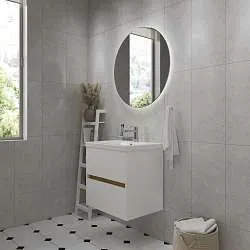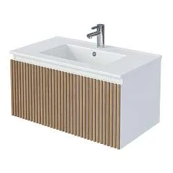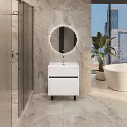 Тумба с раковиной, воплощающая собой легкость, элегантность и вневременной дизайн, который остается актуальным вне зависимости от мимолетных модных тенденций. Изящный фасад с фрезеровкой и глубокая раковина с высокими бортами создают невероятное сочетание эстетики и функциональности, которое будет актуально в пространствах любой стилистики - от сдержанных и благородных традиционных до стильных современных и смелых эклектичных. Нижний ящик тумбы имеет увеличенные габариты для удобного хранения бытовой химии и прочих крупных предметов, а два верхних ящика небольших размеров идеальны для размещения косметики и аксессуаров.Характеристики: