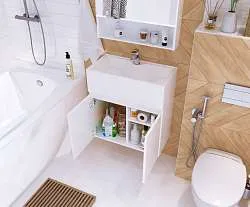 - тумба в комплекте с раковиной и сифоном-компакт: готовое решение для ванной комнаты;