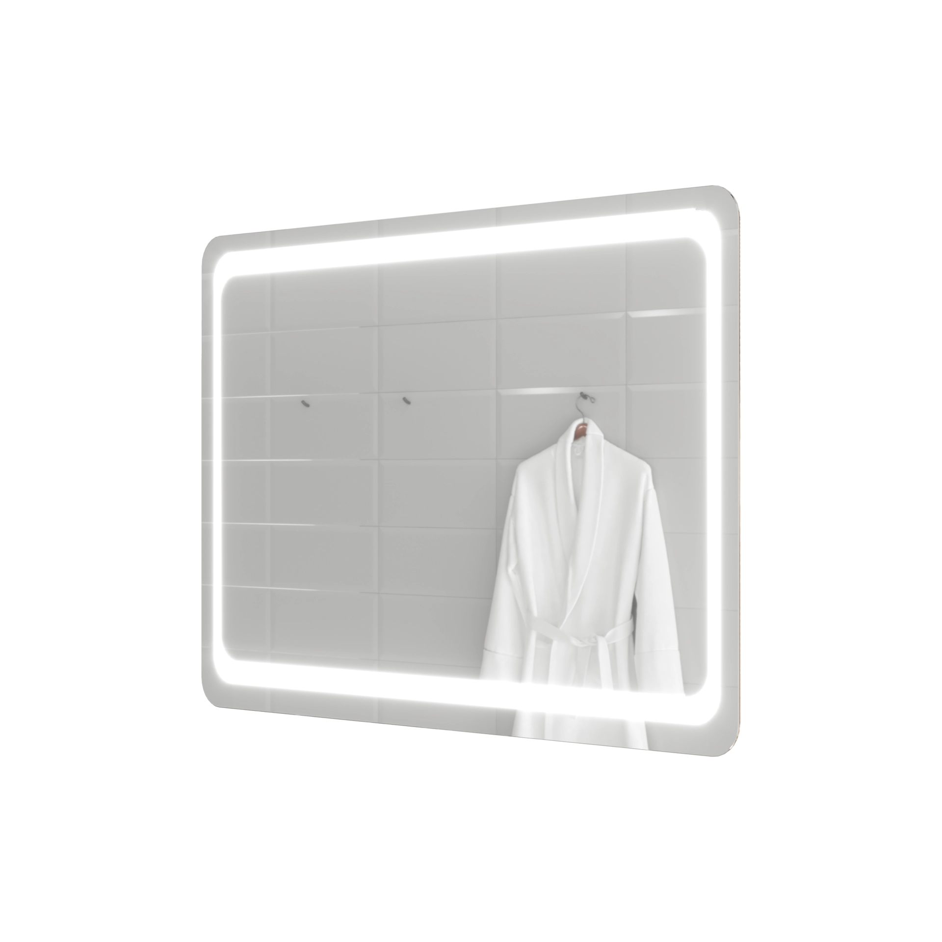 Зеркало, выполненное на стыке классических и современных решений в дизайне аксессуаров. Оно имеет традиционную форму прямоугольника с мягкими краями, которая подчеркивается дублирующим ее рисунком, выполненным методом художественного матирования. Мягкий свет, излучаемый по всему периметру зеркала, не только делает более удобным его ежедневное использование, но и позволяет создавать в ванной комнате особенно уютную атмосферу. Для изготовления зеркала используется французское или бельгийское зеркальное полотно на основе серебряной амальгамы, что значительно увеличивает срок службы модели.Характеристики: